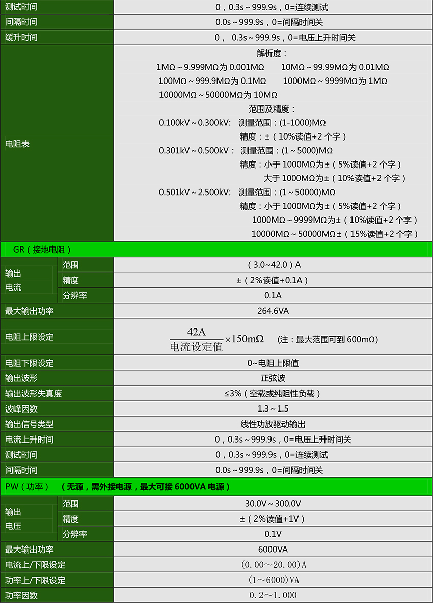 具有双频综合测试,频率范围 50 Hz、60 Hz。