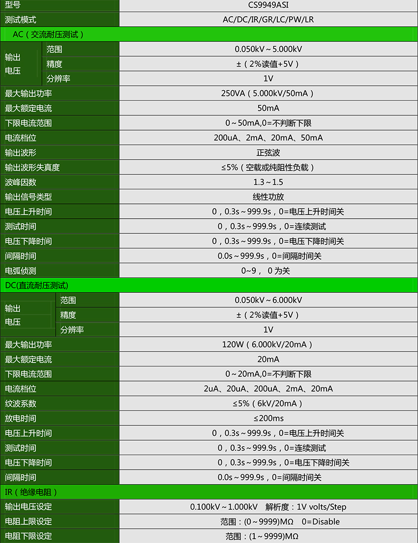 具有双频综合测试,频率范围 50 Hz、60 Hz。