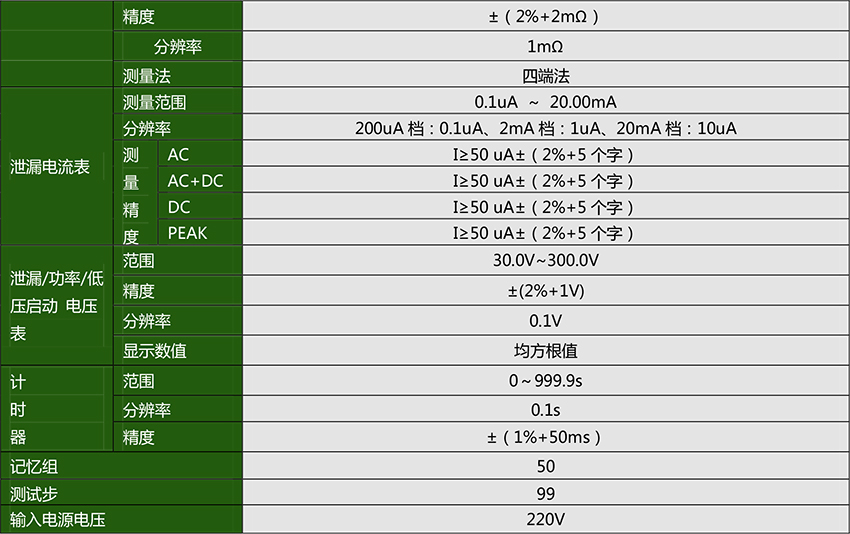 泄漏电流提供 AC,AC+DC, PEAK, DC 四种检波方式。