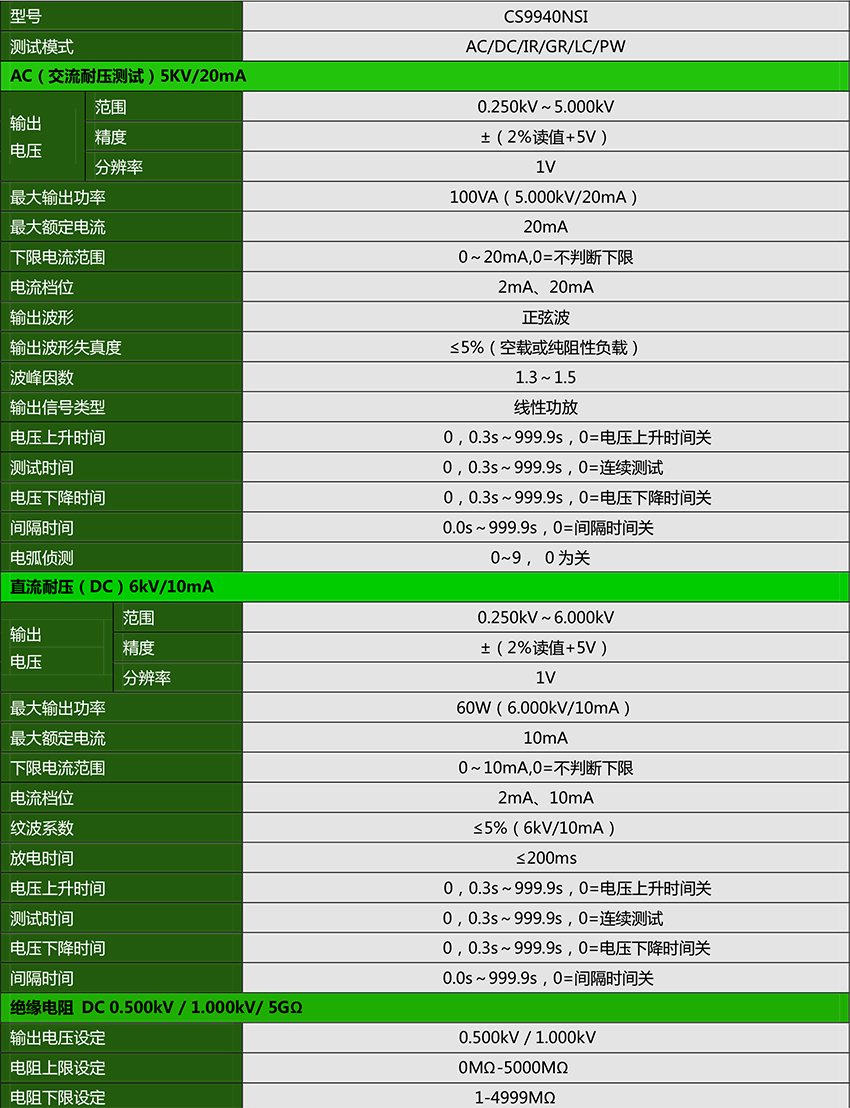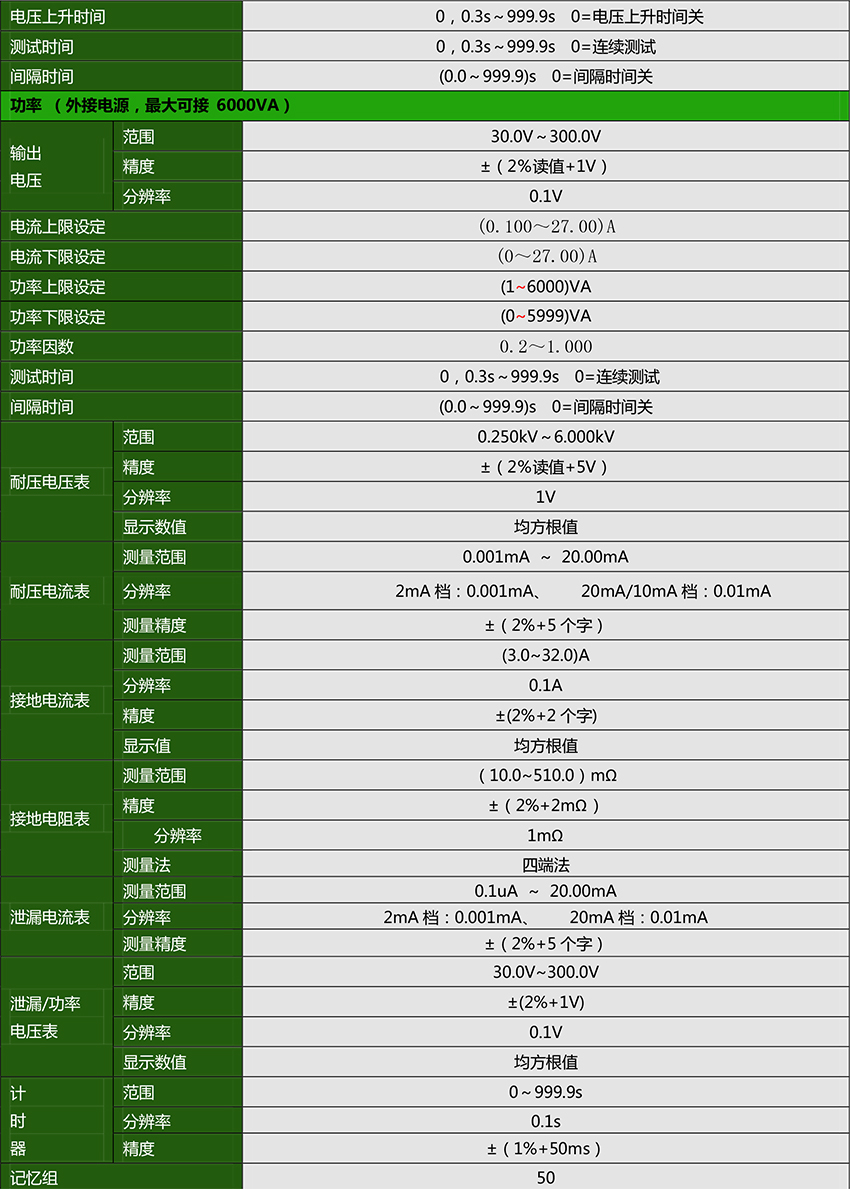 交直流耐压、绝缘、接地、泄漏、功率多功能于一体,测试速度快,效率高 。